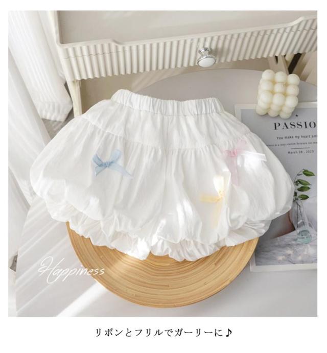 韓国ファッション 子供服 パンツ 短パン かわいい 女の子 女の子 キッズ 子供 ショートパンツ バルーンパンツ ホットパンツ ベビーパンツ カジュアル シンプル ブルマパンツ リボン付き 夏服 無地 90 100 ショートパンツ 120 130 ホワイト ブルー