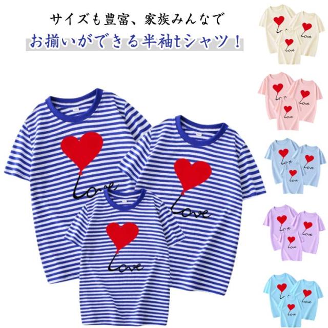 親子お揃いTシャツ ペアtシャツ ハート柄!家族 おそろい リンクコーデ お揃いtシャツ ハート柄!家族 親子コーデ ペアルック ペア 半袖Tシャツ 誕生日 tシャツ親子 大きいサイズ 半袖 3人 おしゃれ プレゼント 親子ペア パパ ママ 子供おもしろ 90〜150