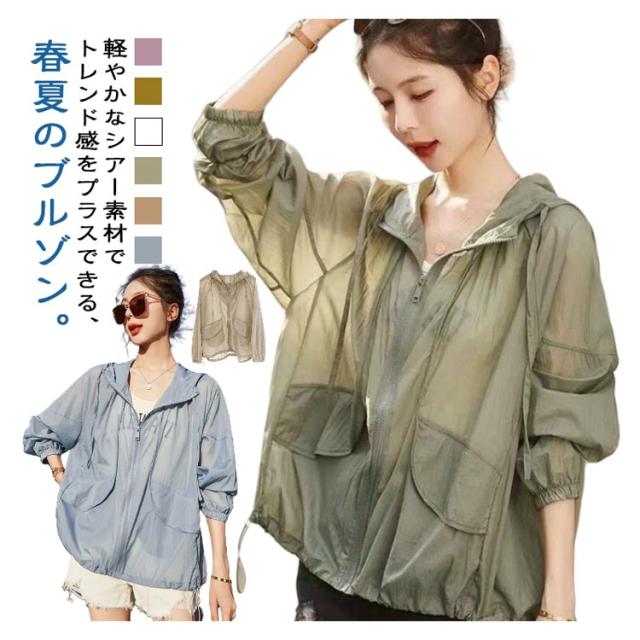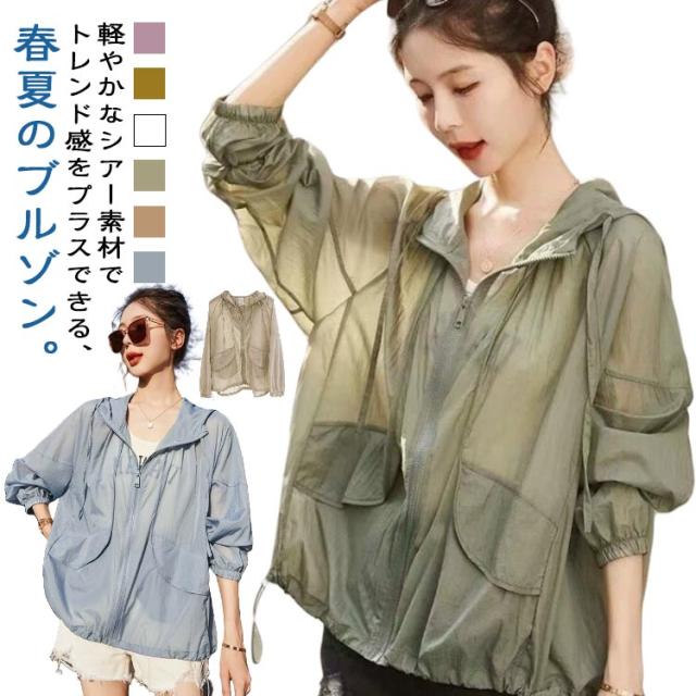 レディース シアーパーカー UVカット 春 シアーブルゾン 透け感 フード付き 長袖 パーカー トップス ジャケット アウター 夏 日焼け止め 虫除け シースルー シアーパーカー 紫外線対策 UVカットパーカー 涼しい 薄手 軽い