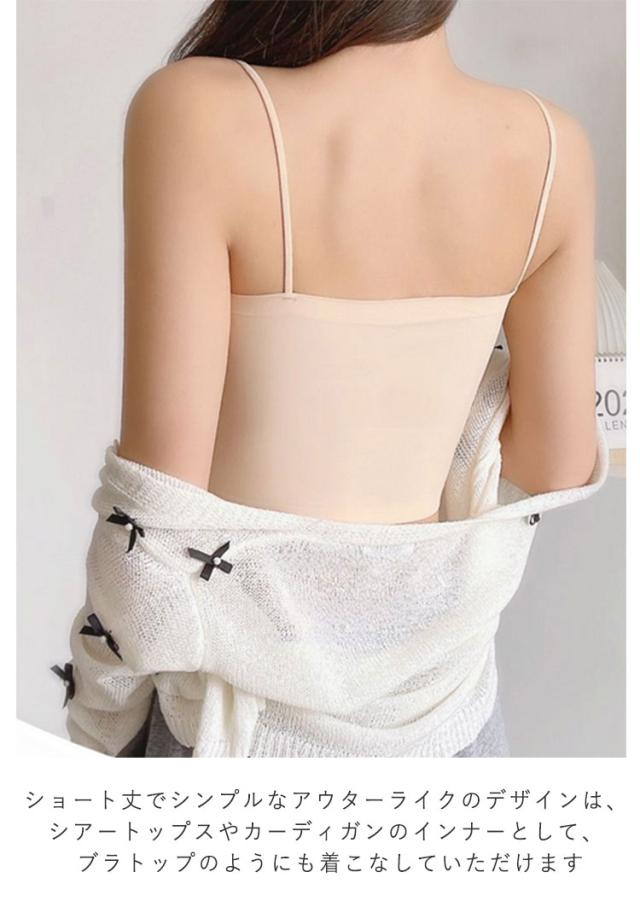 | デコルテが綺麗に見せるスクエアネックがおしゃれなノンワイヤーブラジャーです。 ノンワイヤー、サイドボーンもなしでストレスフリーなのにしっかりハミ肉をキャッチ! 谷間を隠すデザインなので胸元のチラ見えOK。まるでキャミソールを着ているようなかわいらしさ。 ショート丈でシンプルなアウターライクのデザインは、シアートップスやカーディガンのインナーとして、ブラトップのようにも着こなしていただけます。 ベアトップ風の直線ラインで見えてもおしゃれ!露出度高めなのに胸元のラインを強調しすぎず、清潔感のあるキャミソールトップス。 | |