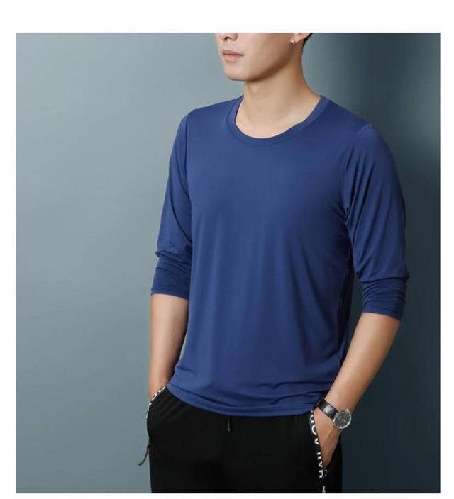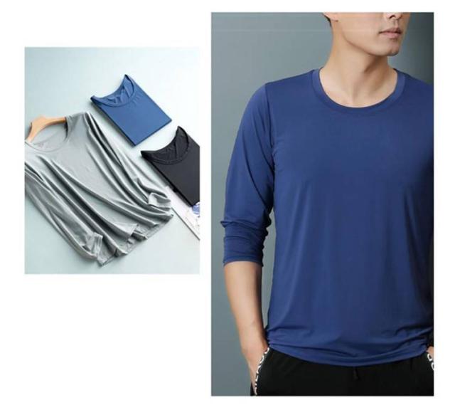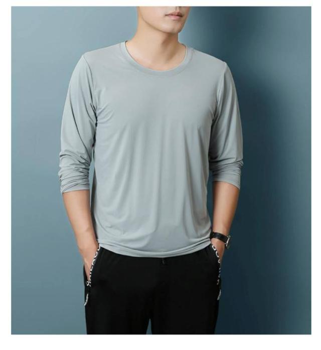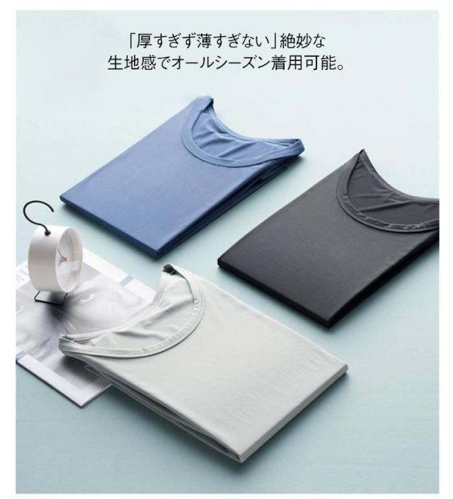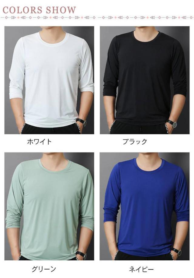 メンズ インナーシャツ 紳士 クルーネック アンダーシャツ 男性用 下着 長袖 大きいサイズ 丸首 Tシャツ レディース Uネック アイスシルク 白 インナーシャツ コットン 接触冷感 黒 無地 定番 シンプル オフィス 仕事 作業服 作業着 トレーニングウェア ゴルフ