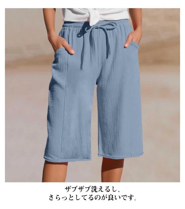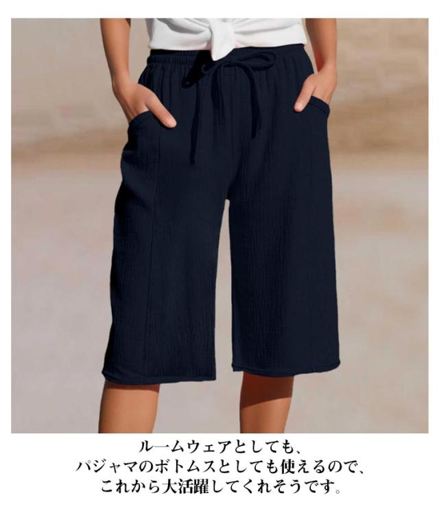 | 夏の普段着に最適です。 ザブザブ洗えるし、さらっとしてるのが良いです。 涼しくて肌触りが良いので、とても過ごしやすいです。 ル一ムウェアとしても、パジャマのボトムスとしても使えるので、これから大活躍してくれそうです。 | |