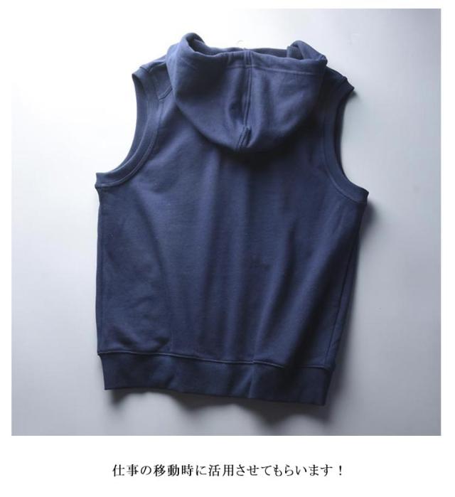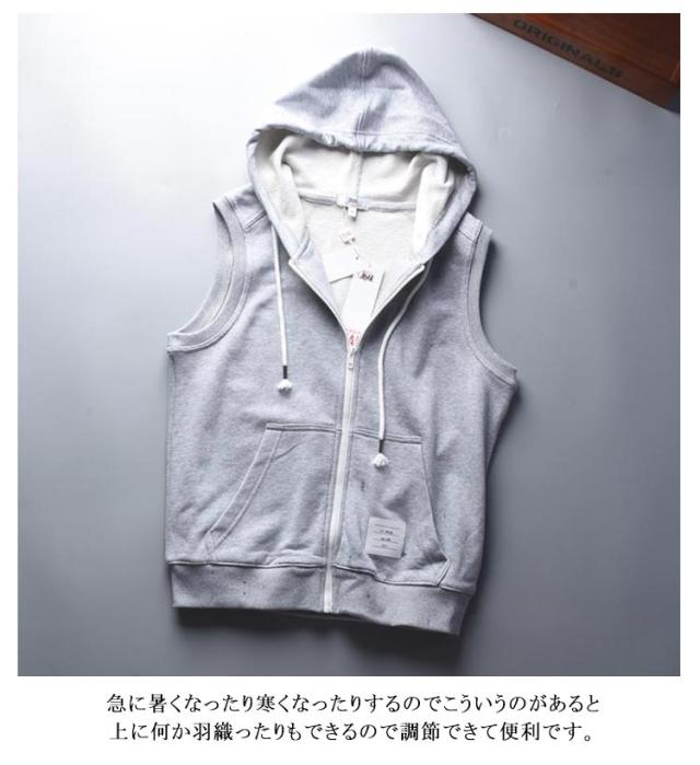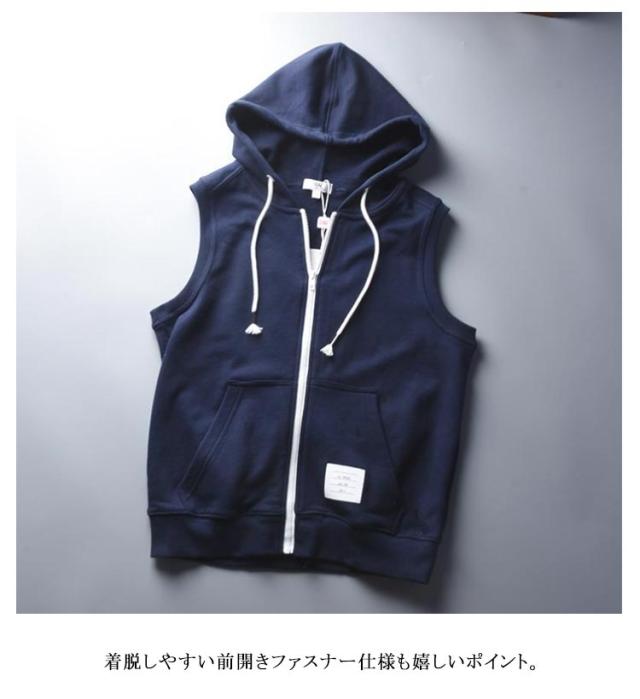 | フード付きのノースリーブのスウェットベストパーカー。 ゆとりを持たせたシルエットと軽い着心地で、 これからの季節のレイヤードスタイルや一枚着としても重宝して頂けます。 着脱しやすい前開きファスナー仕様も嬉しいポイント。 仕事の移動時に活用させてもらいます! シャツやブラウス、ワンピースなどとのレイヤードもバランスが取りやすく、 インナー次第で雰囲気を変えられます。 急に暑くなったり寒くなったりするのでこういうのがあると上に何か羽織ったりもできるので調節できて便利です。 | |