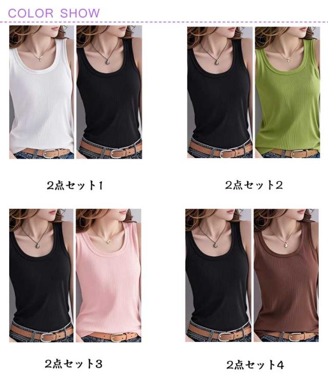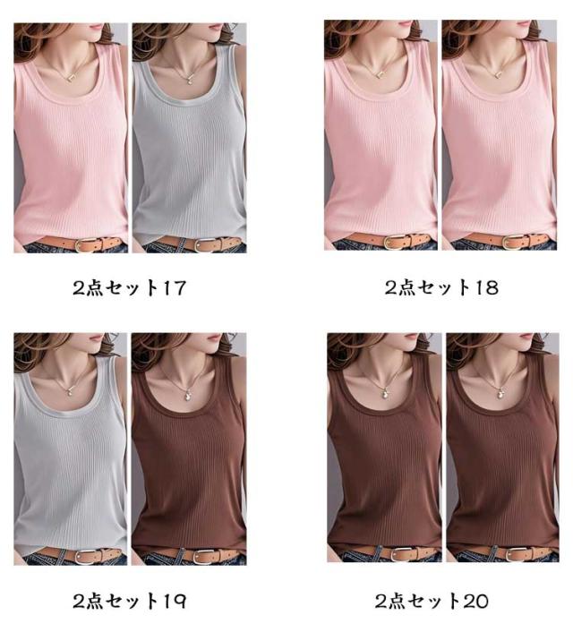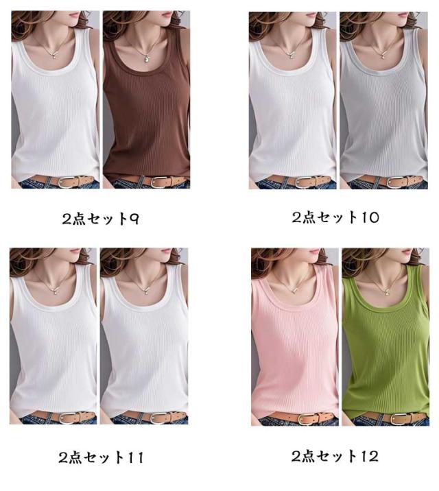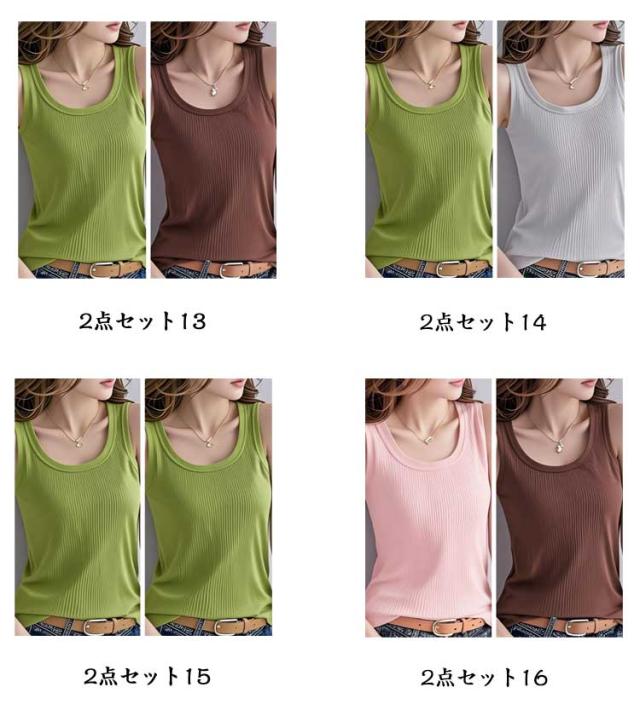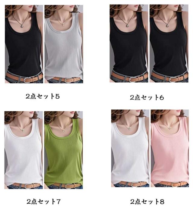 レイヤード リブ トップス 冷感 インナー 2点セット タンクトップ 肌着 レディース 接触冷感 アイスシルク 春服 タンクトップ ラウンドネック 重ね着 M 下着 ノースリーブ 夏服 無地 シンプル おしゃれ S 無袖 L XL