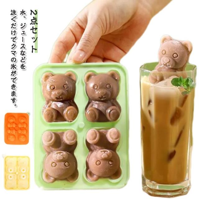 4個取りパンダ 製氷皿 アイス 製氷皿 シリコン 冷蔵庫 製氷 熊 トレイセット アイスキューブトレイ 製氷皿 2点セット 氷 シリコン キッチン用品 配膳用品 シンプル クリエイティブ 製氷型 プリン用 クマ プリン作る 熊 プリン用 アイスクリーム作り