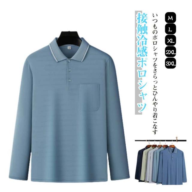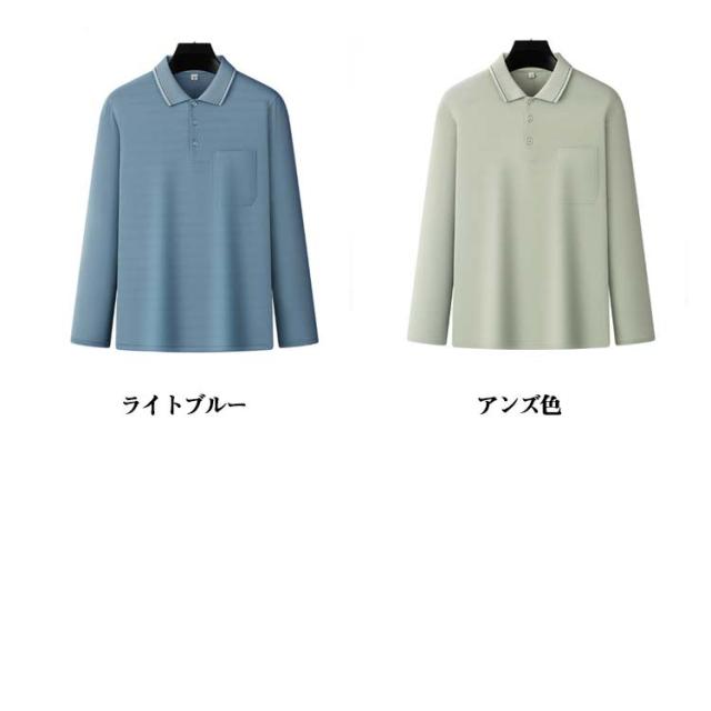 ストレッチ メンズ ポロシャツ メンズ ビジネス Tシャツ 胸ポケット 吸汗 長袖 涼しい 冷感 通気性 メッシュ生地 ゴルフウェアポロシャツ 紳士服 通勤 速乾 男性 カジュアル 春 夏 全5色 父の日カジュアル スポーツTシャツ