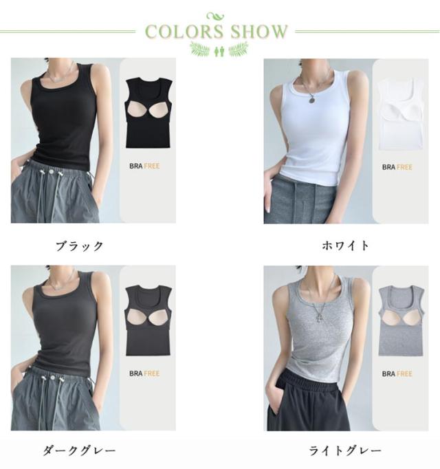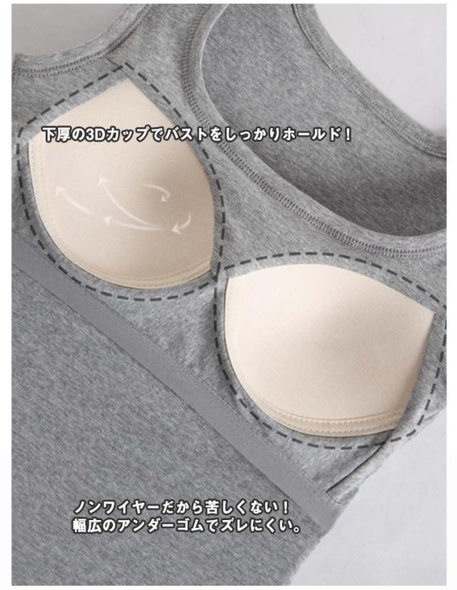 カップ付き ノースリーブ ブラトップ タンクトップ インナー ブラトップ ブラトップ 綿 肌着 レディース ブラタンクトップ カップ付きインナー ノンワイヤーブラ アンダーゴムなし 昼夜兼用 ホワイト グレー ブラック タンクトップ カップ付きタンクトップ 垂れない