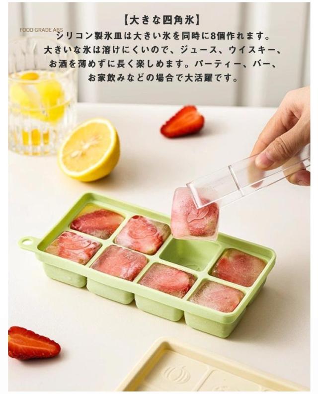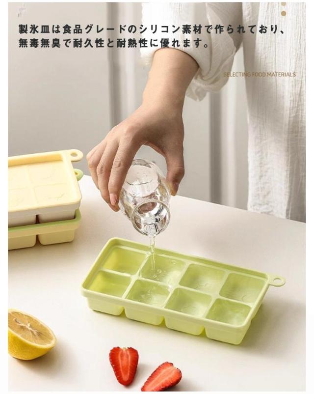 製氷皿 製氷器 夏 フタ付き シリコン 2個セット 冷たい 取りやすい 冷凍 氷 アイス 8格 製氷 製氷皿 シリコン製氷皿 アイストレイ アイスキューブ 四角 角型 冷蔵庫 キッチン用品 冷蔵庫用品 冷凍庫