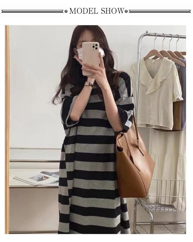 着痩せ 半袖 Tシャツワンピ ワンピース ロングワンピース レディース 夏 部屋着 tシャツワンピース ゆったり 体型カバー ルームワンピース カットソー ボーダー柄 カジュアル Tシャツワンピ 大きいサイズ 通勤 おしゃれ シンプル 着?せ