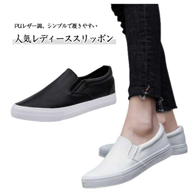 | PUレザー調、シンプルで履きやすい人気レディーススリッポン ふかふかのクッションソールで、長時間のお出かけにマスト。 質の高いPUレザーを採用する。お手入れ簡単にもうれしい! 定番のブラック/ホワイト2色展開、ロングシーズンに大活躍する一足間違いなし。 | |