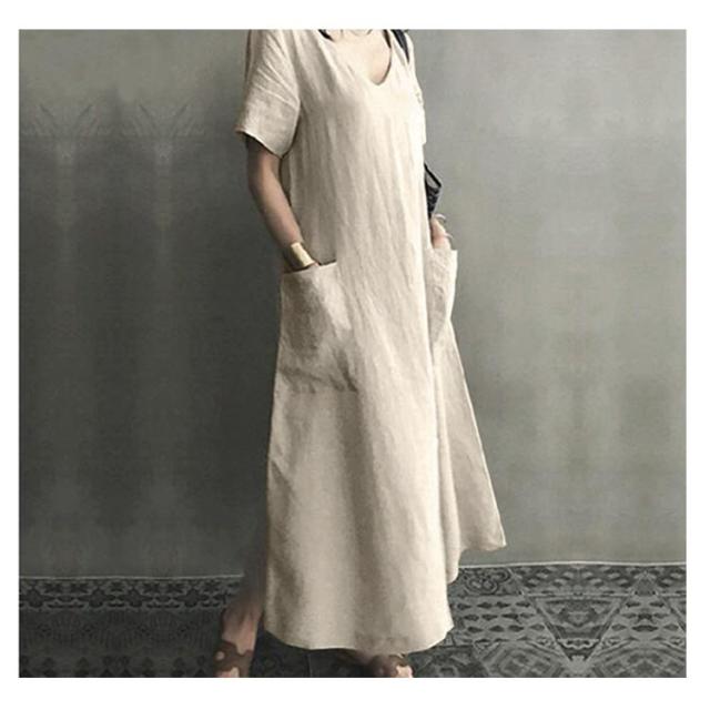 | "ナチュラルに抜け感をつくる。"すとんと着るだけ『リネン調ワンピース』 着回しやすいシンプルなデザイン。 すとんと締め付け感のないゆったりサイズ。 たっぷりと贅沢に生地を使った拘り抜いた一枚。 便利な両サイドポケット付き。 | |