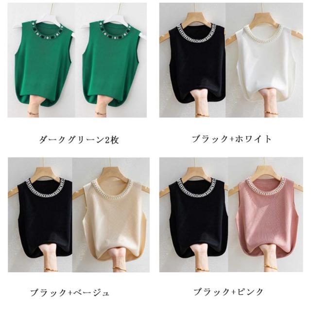タンクトップ 【2枚セット】 リブニット サマーニット 春夏 ニットベスト レディース 無地 ラウンドネック 大人 パール付き キャミソール ノースリーブ スーツインナー 送料無料 【2枚セット】 フェミニン きれいめ カットソー 通勤 20代 30代 40代