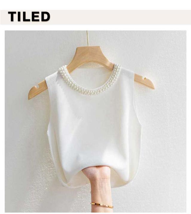 | 伸縮性のあるリブ生地だから着心地ダンクトップ♪ パールが首元を華やかに演出◎大人上品なブラウス。 トップスとしてだけでなく、優しい肌触りのインナーとしても着回しOK。 | |