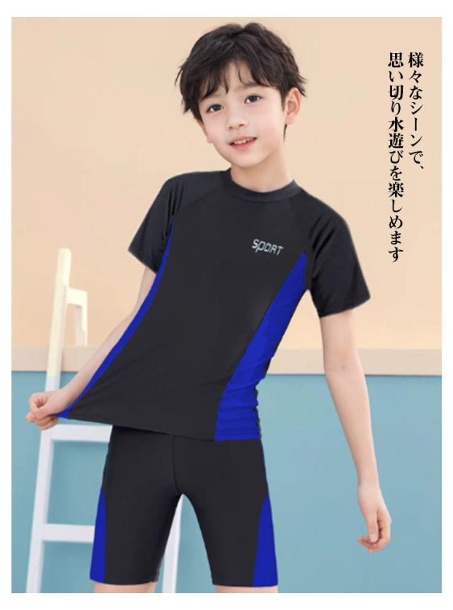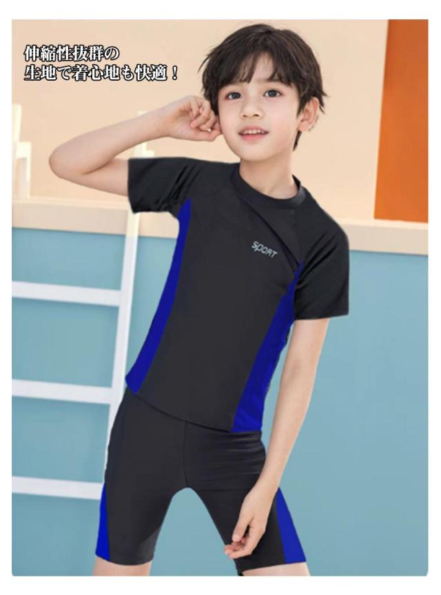 スクール水着 男の子 水着 男子 フィットネス水着 キッズ 上下セット スクール水着 小学生 中学生 子ども 子供 セパレート 半袖 tシャツ 短パン プルオーバー UVカット 小学校 UPF 紫外線対策
