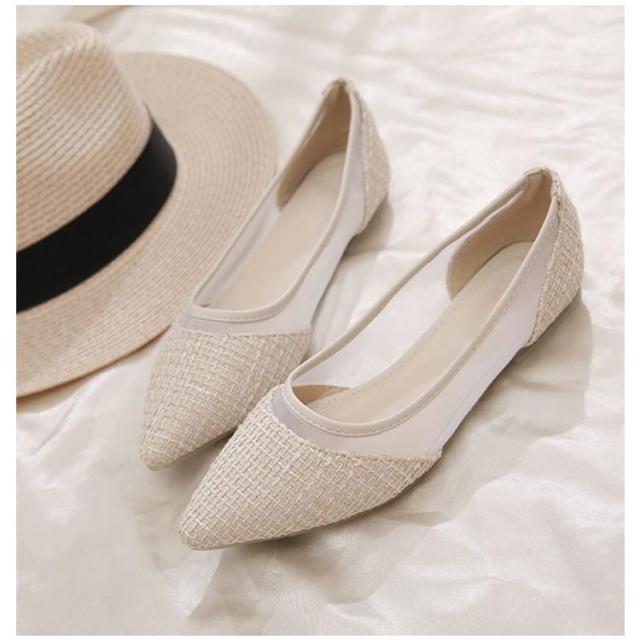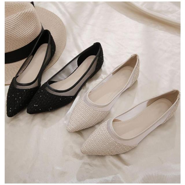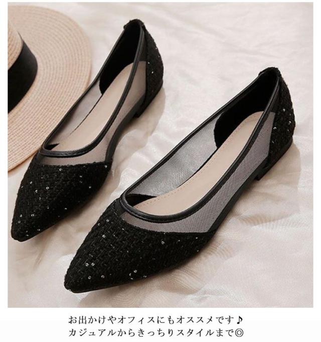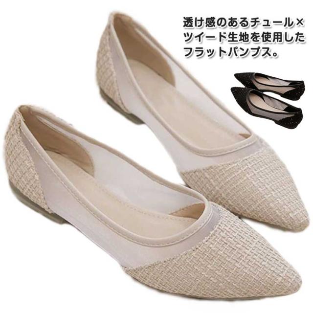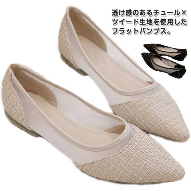 メッシュ ぺたんこ 通気性抜群 歩きやすい フラット パンプス 痛くない 透け感 パンプス チュール レディース キャンパス 蒸れにくい パンプス 疲れにくい ポインテッドトゥ シースルー フラットパンプス 靴 春 夏 きれいめ ツイード 大人可愛い パーティー 結婚式