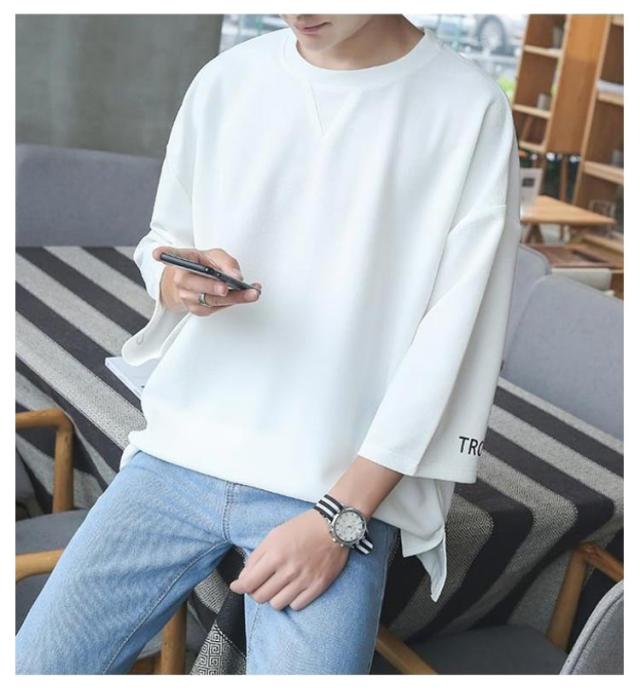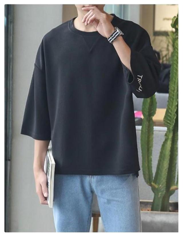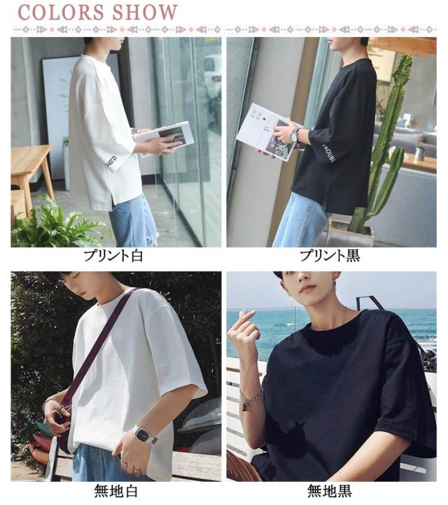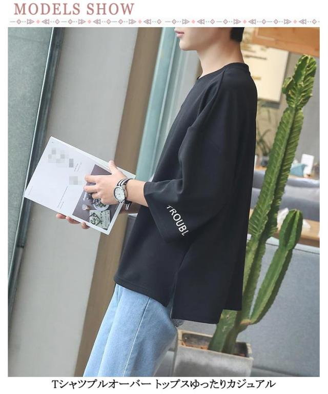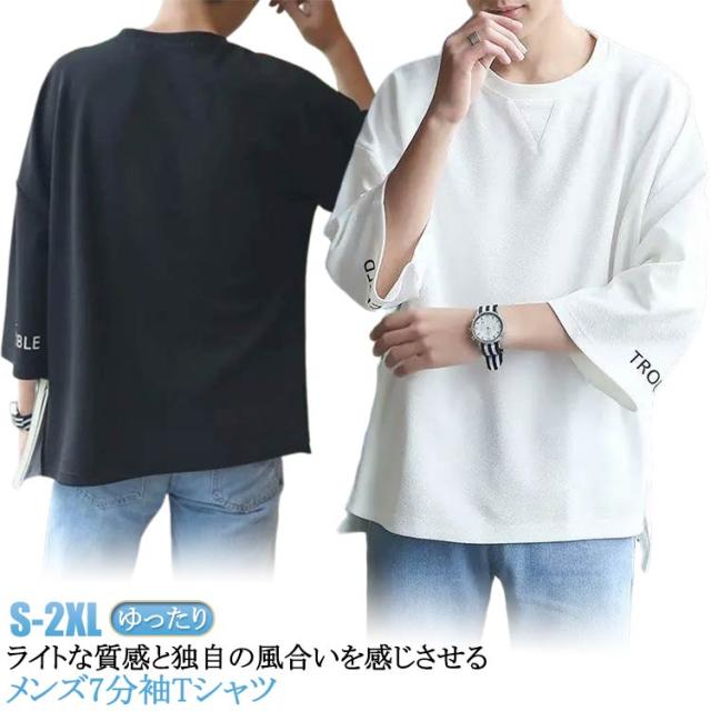 メンズ インナー Tシャツ Tシャツ トップス カットソー ビッグシルエット ゆったり 七分袖 クルーネック カジュアル 夏物 韓国風 メンズファッション シンプル