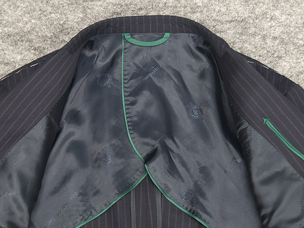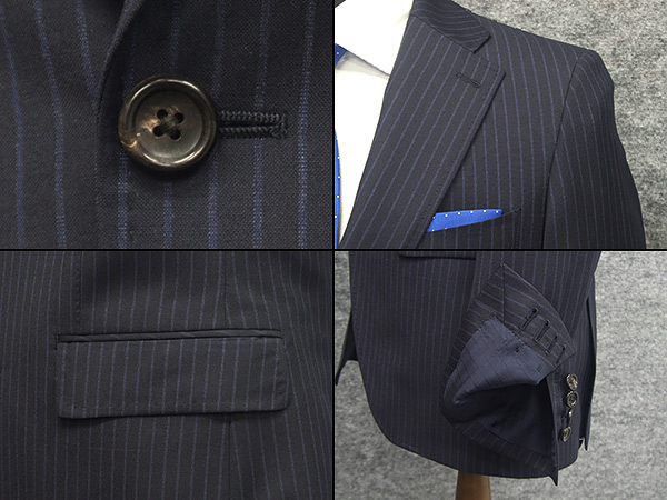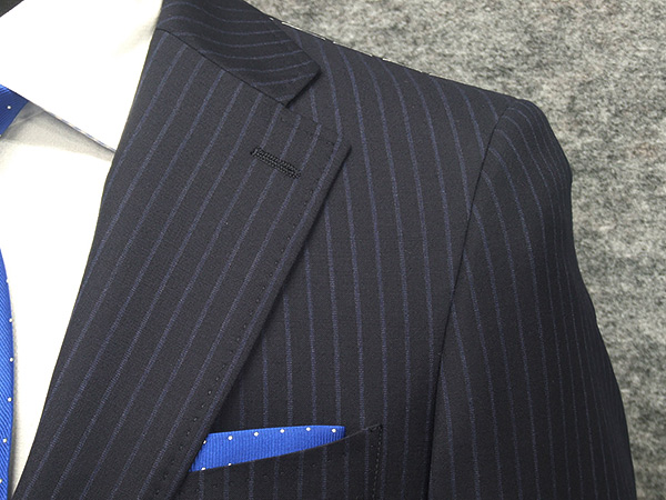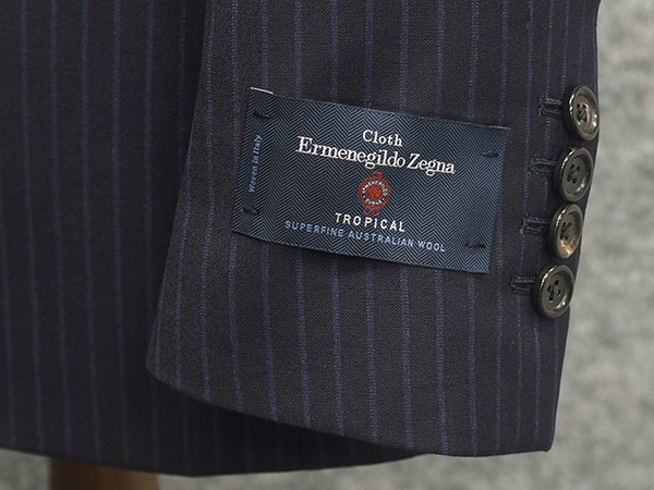 春夏物 濃紺/縞 [Ermenegildo Zegna] ゼニア TROPICAL使用 トレンドスタイル2釦スーツ 細身 [A体][AB体] EZD70
