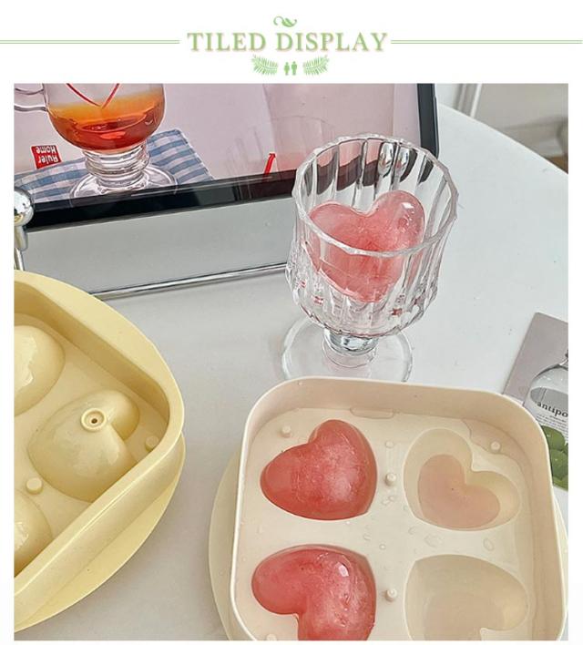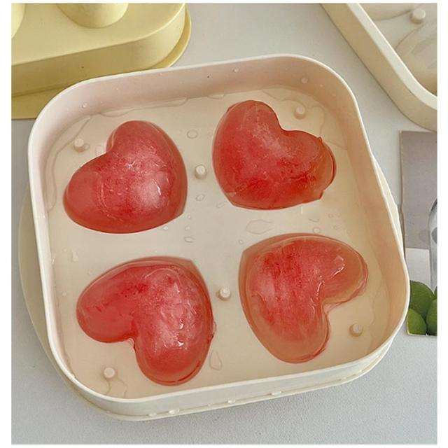 製氷皿 製氷器 夏 冷凍 アイス 製氷皿 アイストレー 氷 取りやすい フタ付き 製氷 冷たい ハート型製氷皿 アイストレイ アイスキューブ 4個 ハート型アイス氷 かわいい氷 アイストレー 冷蔵庫 キッチン用品