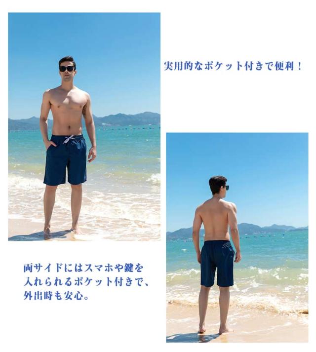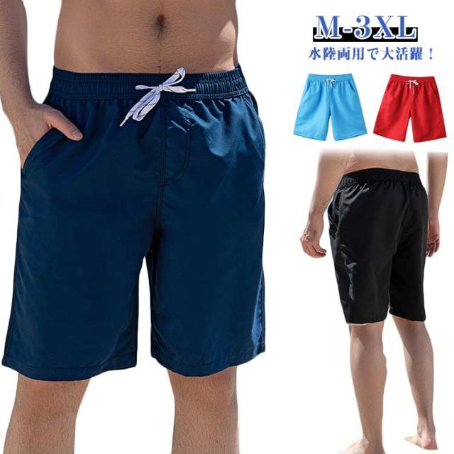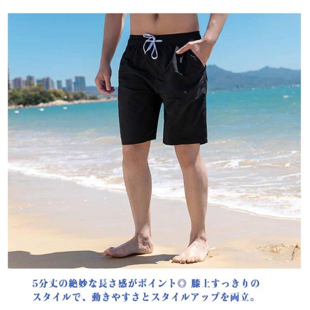 サーフパンツ 5分丈 ショートパンツ 短パン サーフパンツ 水陸両用 スポーツ 大きいサイズ M-3XL 夏用 無地 メンズ ビーチパンツ トレーニング 水着 ウエストゴム ポケット付き カジュアルパンツ 男性用 短パン おしゃれ アウトドア