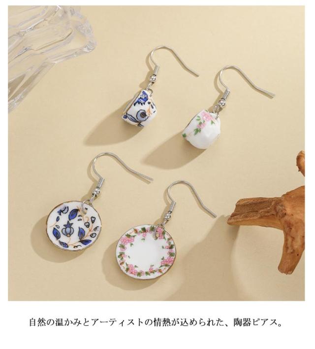 ピアス 陶器 アクセサリー 陶磁器 陶芸 イヤリング セラミックス 合金 ギフト ピアス 個性的 プレゼント 自分 女性 友達