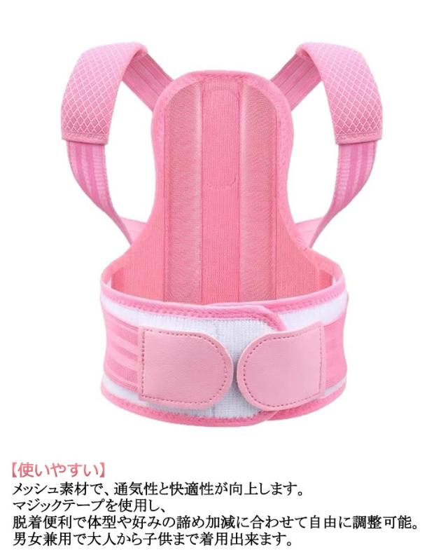 | 【猫背対策に】 猫背はお腹に脂肪がたまりやすく、肩こりや腰痛になるだけでなく、見た目の印象を悪くする。 人体工学的にデザインされた猫背矯正ベルトは、肩を開いて背筋を伸ばし、イメージを高めて魅力的な姿勢に仕上げます。 【正しい姿勢で理想のボディへ】 日常生活で重力や筋力の衰えにより徐々に正しい姿勢を失われていく私たち。 猫背矯正サポーターは、自然に背筋がピーンと伸びた正しい姿勢へ導きます。 猫背の改善とともに、首こりや肩こりを解消し、近視予防など体のあらゆる健康面が改善されます。 【使いやすい】メッシュ素材で、通気性と快適性が向上します。 マジックテープを使用し、脱着便利で体型や好みの諦め加減に合わせて自由に調整可能。 男女兼用で大人から子供まで着用出来ます。 【使用対象】猫背で姿勢が気になる方、肩や身体の歪みが気になる方、肩こりや腰痛がある方、パソコンやスマホ時間が長い方、運転時間が長い方、美しい姿勢を保ちたい方などにオススメです。 | |