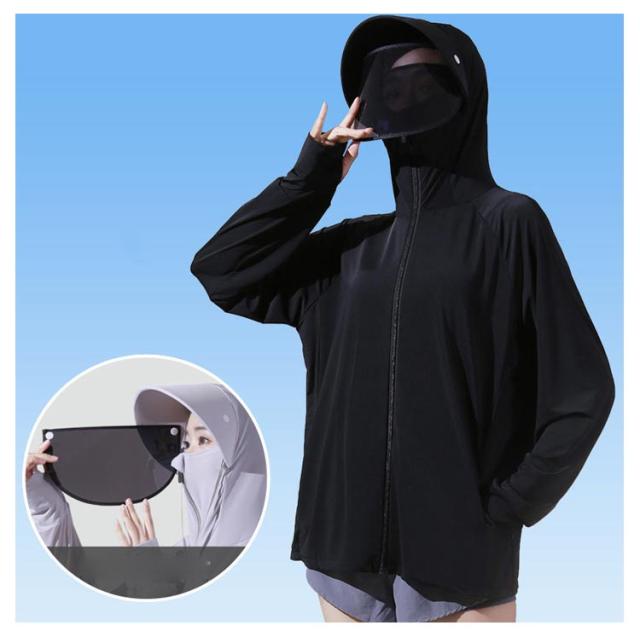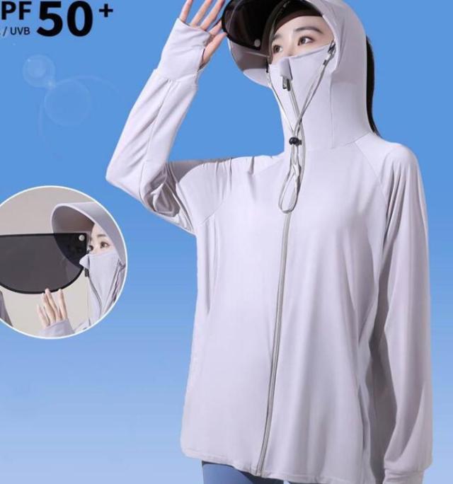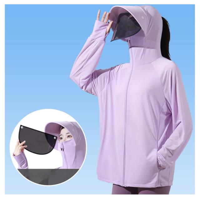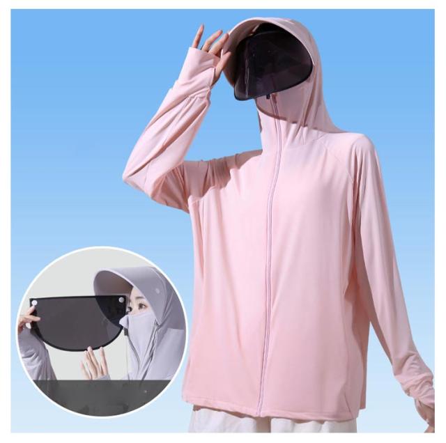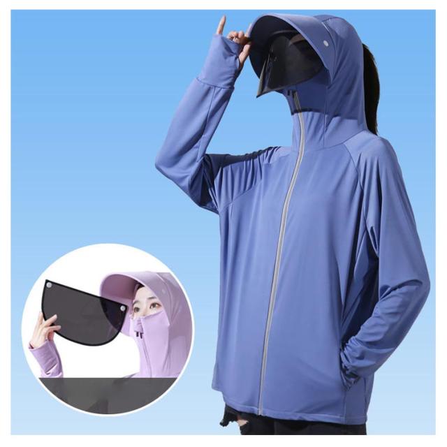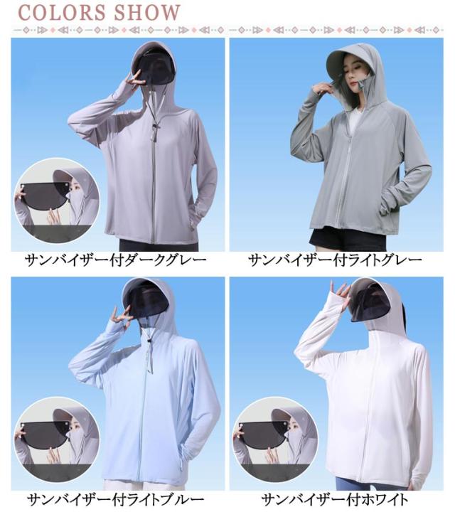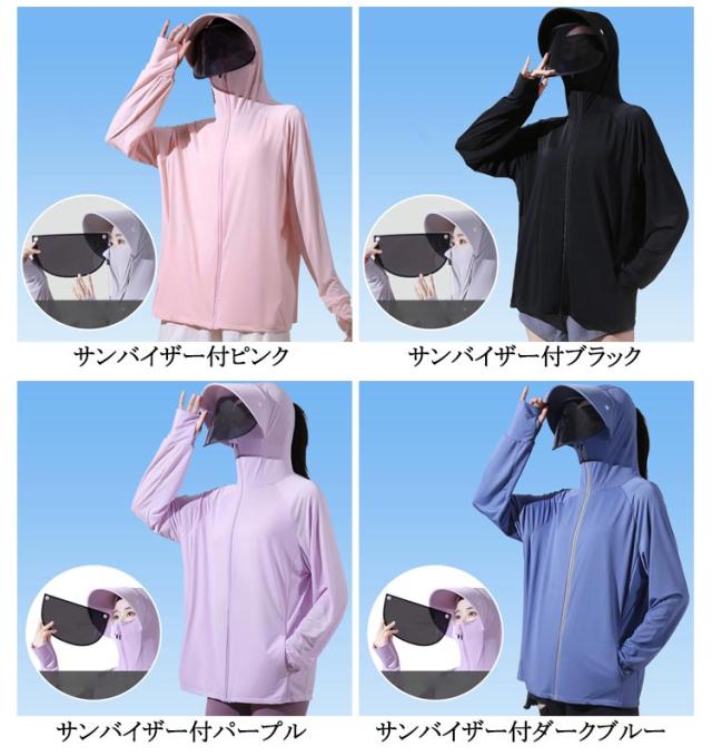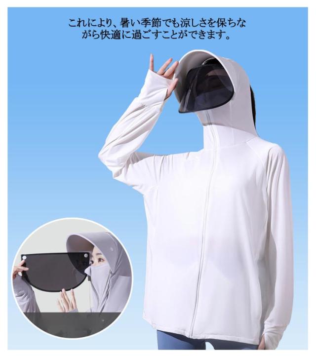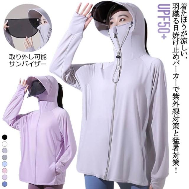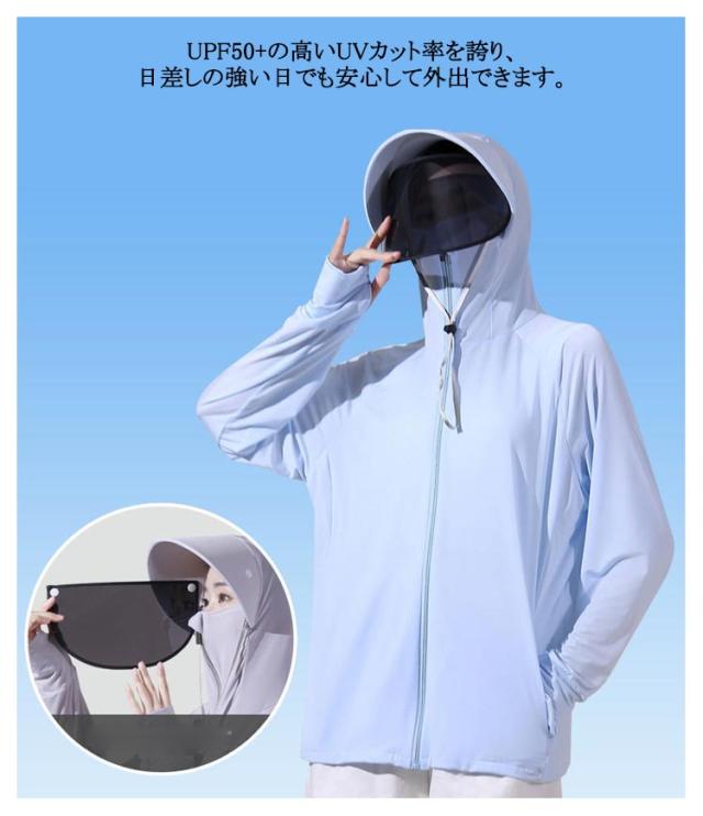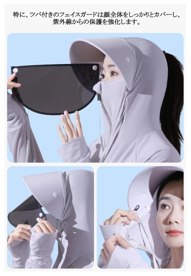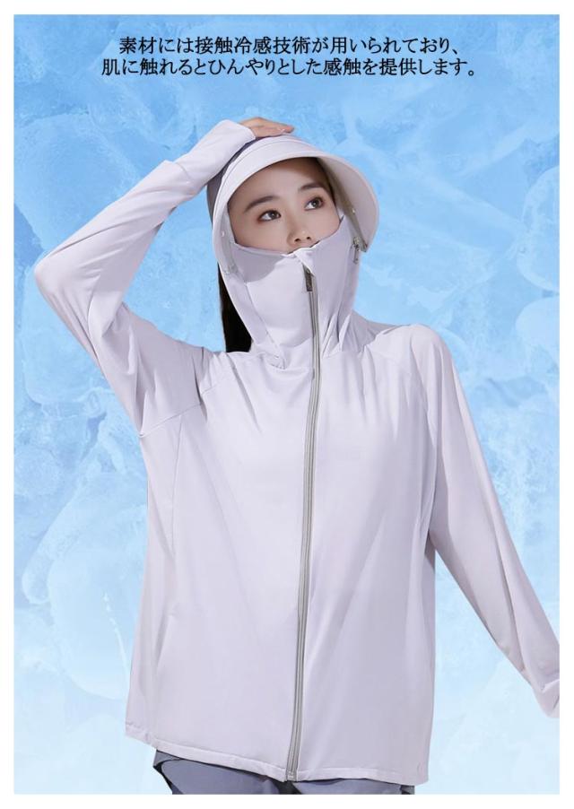 UVカット パーカー 接触冷感 UVパーカー マスク付き UPF50+ アウター ラッシュガード レディース 360度保護 薄手 つば付き 長袖 UVカット 涼しい 手の甲まですっぽり つば付き 体型カバー ストレッチ UV対策 サンバイザー