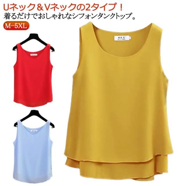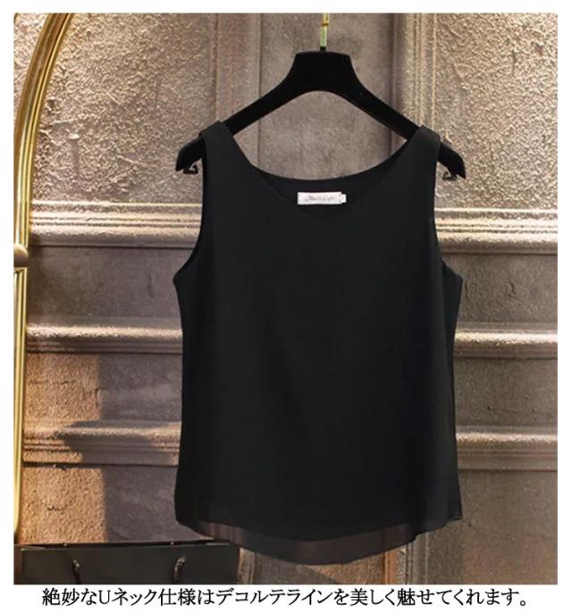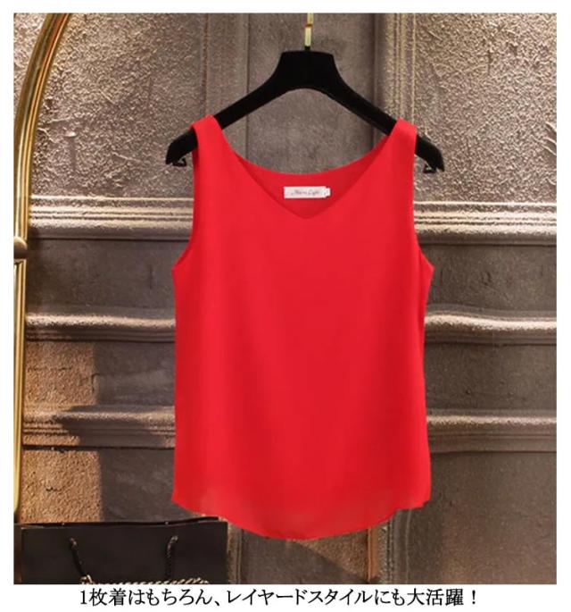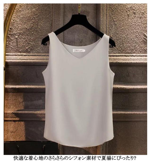 シフォン レディース シンプル タンクトップ シフォン きれいめ ブブラウス トップス インナー ノースリーブ Vネック レイヤード風 重ね着 インナー 無地 ゆったり カジュアル タンクトップ かわいい シフォン 春夏