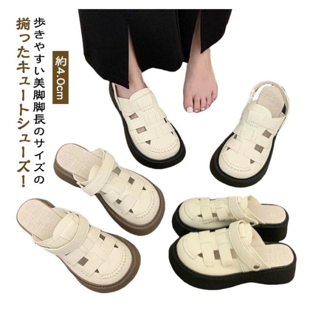 編み込み サンダル 約4.0cm 脚長 サンダル 厚底 スリッパ レディース 夏 グラディエーター フィッシャーマン ミュールサンダル 履きやすい 2WAY 疲れない 美脚 靴 通気性 疲れにくい サマーシューズ 柔らかい フィッシャーマン 黒 おしゃれ