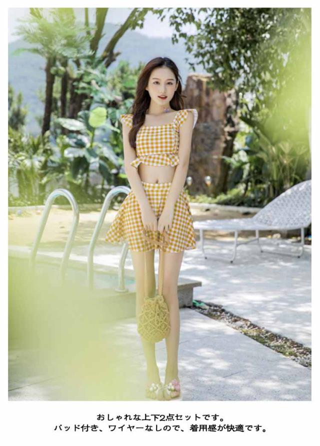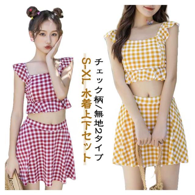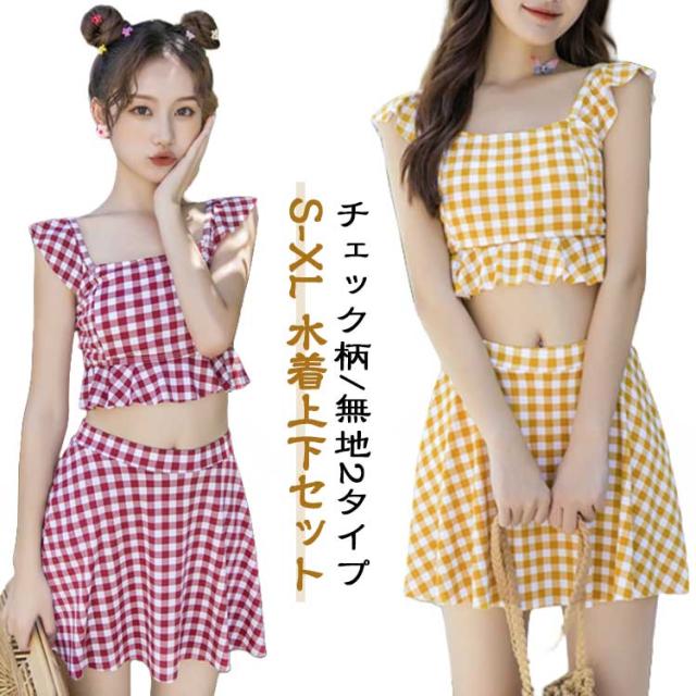 無地 タンキニ レディース パッド付き レディース セット セパレート 水着 水着 フリル チェック柄 可愛い ノンワイヤー タンキニ水着 小胸 水着 みずぎ 露出控えめ 上下セット 可愛い水着 水着 学生 大人 水泳 みずぎ