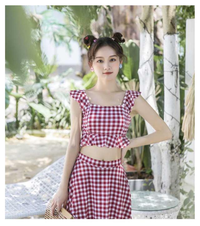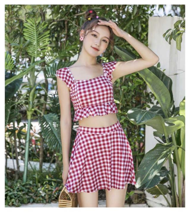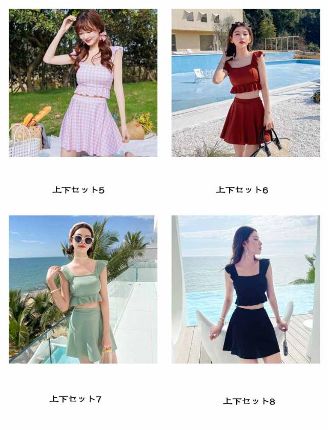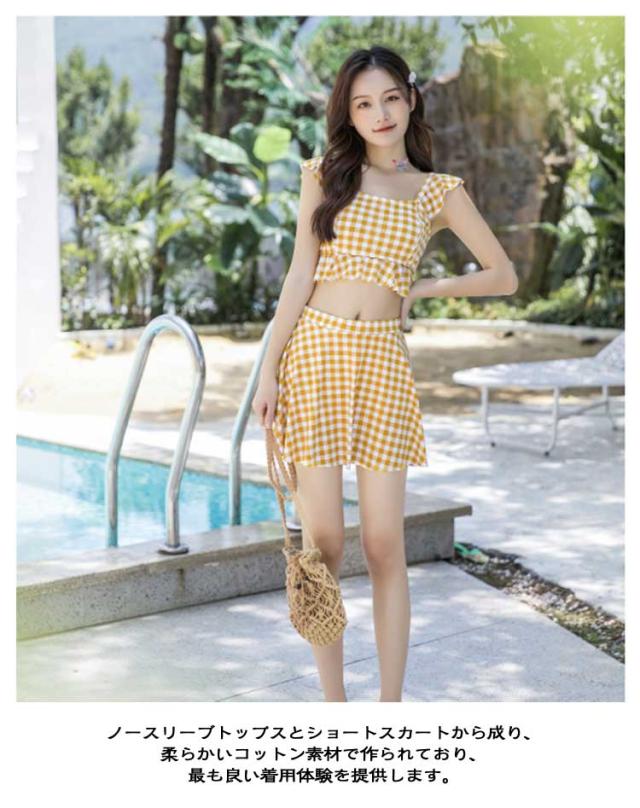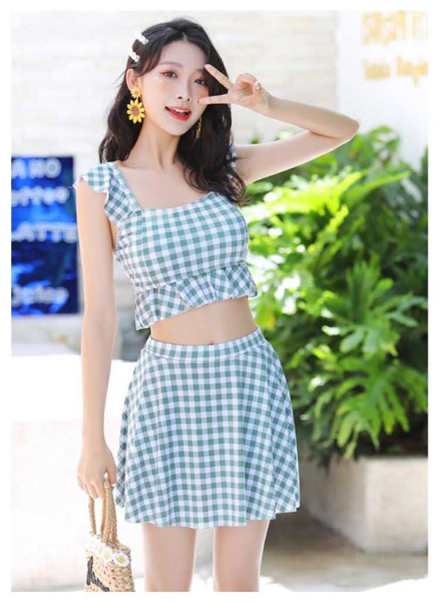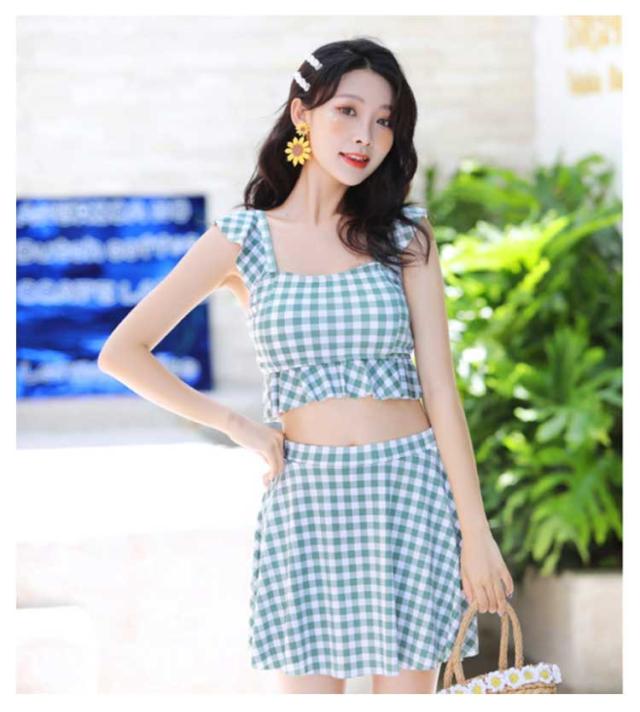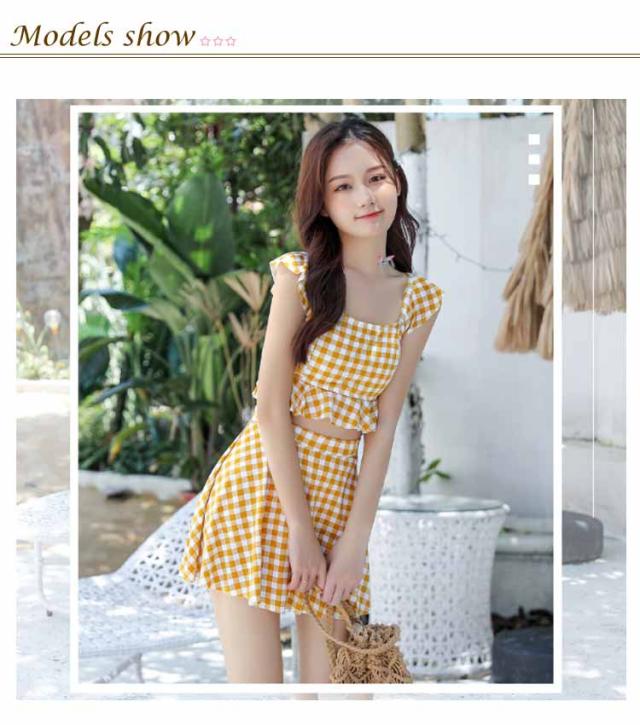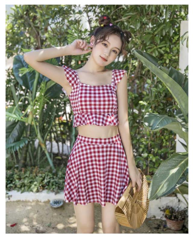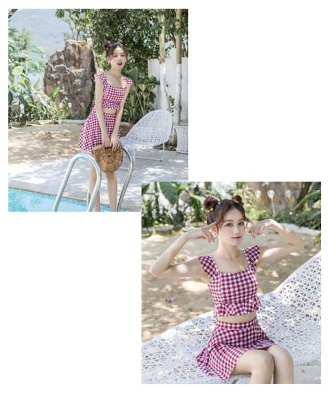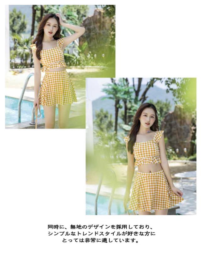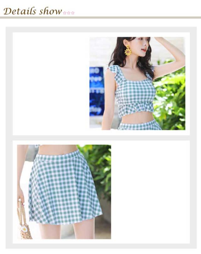 | チェック柄/無地2タイプ S-XL 水着上下セット おしゃれな上下2点セットです。パッド付き、ワイヤーなしので、着用感が快適です。 ノースリーブトップスとショートスカートから成り、柔らかいコットン素材で作られており、最も良い着用体験を提供します。同時に、無地のデザインを採用しており、シンプルなトレンドスタイルが好きな方にとっては非常に適しています。 レースデザインが採用され、美しく魅力的になります。ショートスカートで脚をより長く見せ、完璧な体型曲線を演出することができます。プールやビーチで必須アイテムです! | |