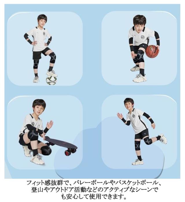 | 膝への衝撃を軽減 ストレッチ性に優れ 装着しやすい 膝全体をしっかりサポート ジュニア用膝サポーターは、スポーツやダンスを楽しむ子供たちの膝をしっかりとサポートします。 伸縮性と通気性に優れた生地を使用しており、長時間の使用でも快適さを保ちます。 軽量設計で装着しやすく、膝への衝撃を効果的に軽減します。 フィット感抜群で、バレーボールやバスケットボール、登山やアウトドア活動などのアクティブなシーンでも安心して使用できます。 両膝用の2枚セットで、膝全体をしっかりと保護します。 | |