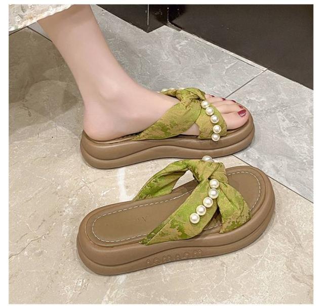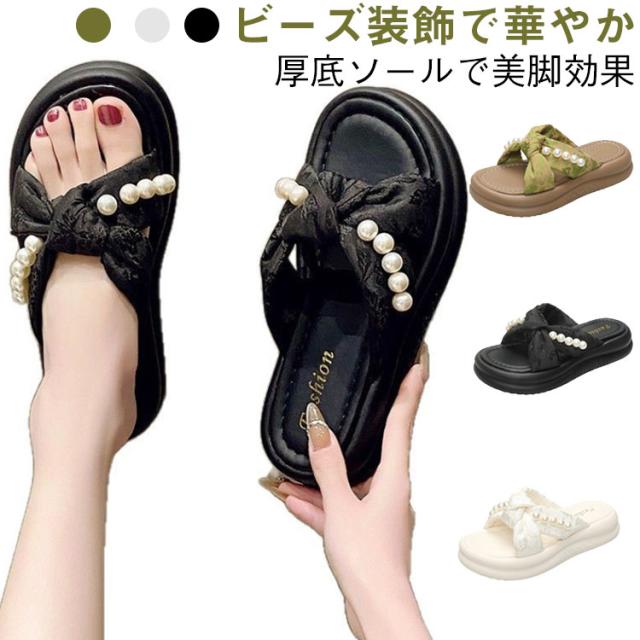 サンダル ビーズ付き 厚底サンダル クロスデザイン ビーチサンダル 厚底 スリッパ 4cm 夏 レディース 美脚 サマーシューズ かわいい