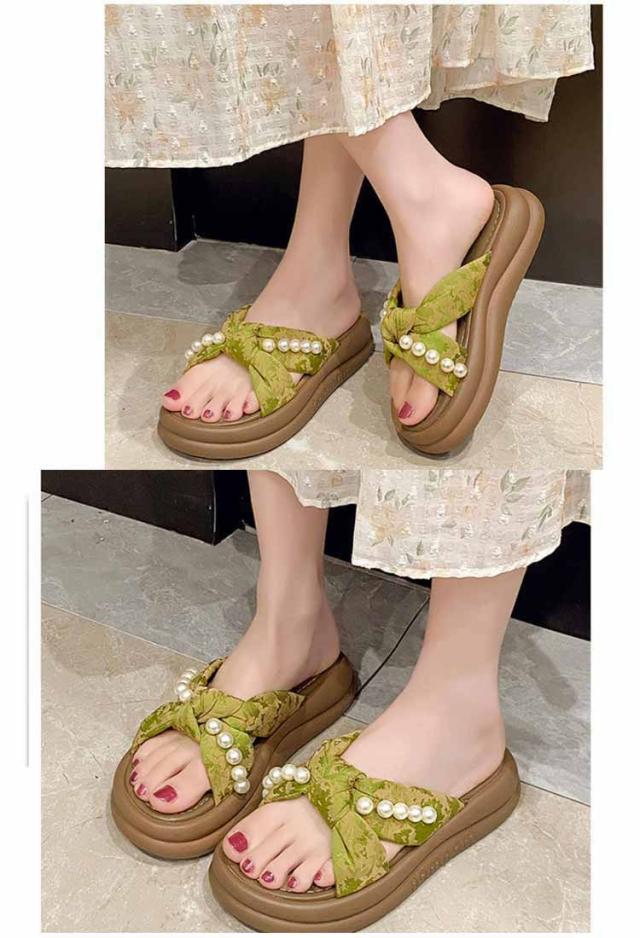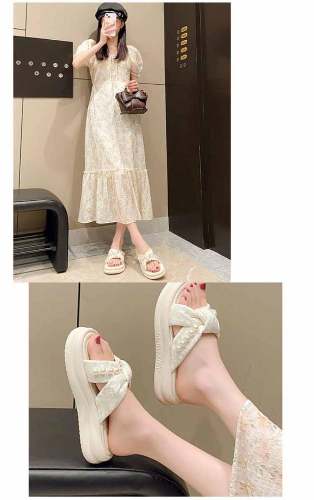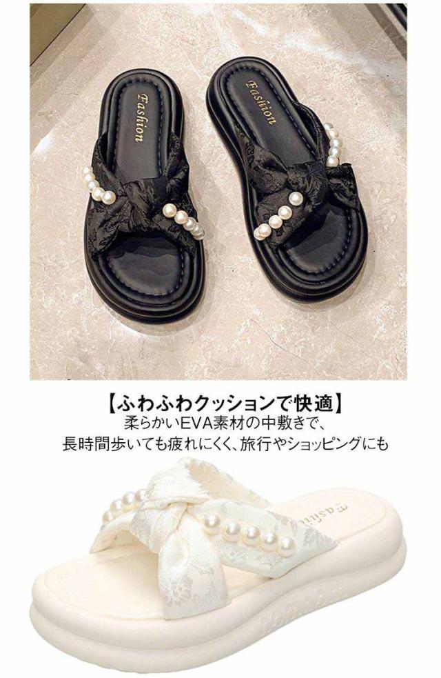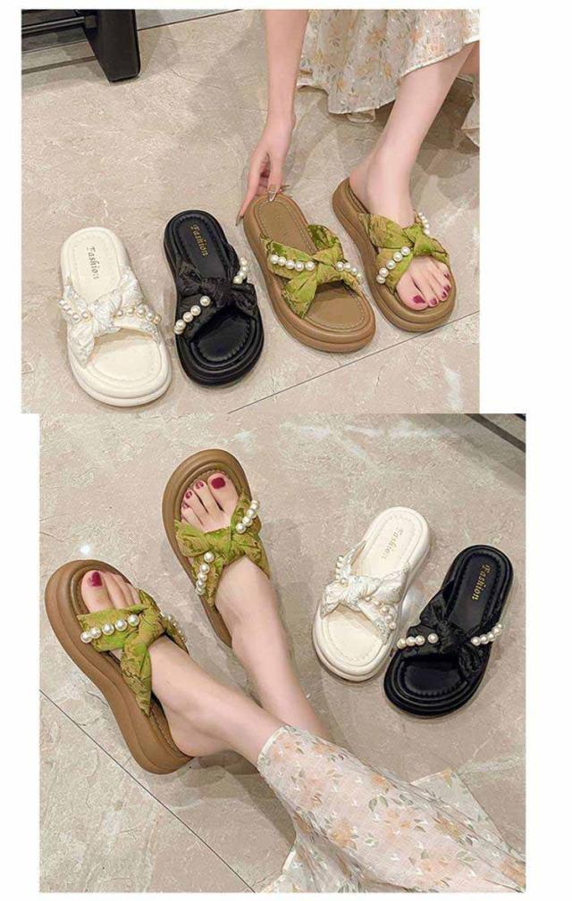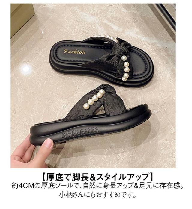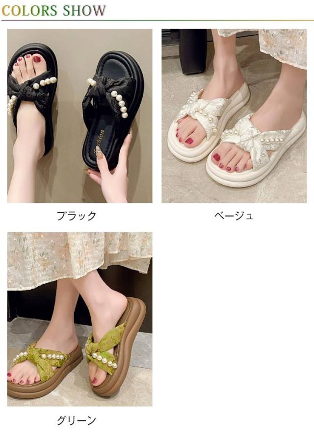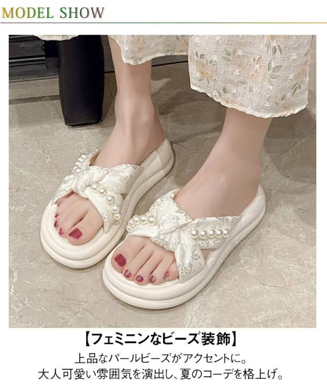 | 【フェミニンなビーズ装飾】 上品なパールビーズがアクセントに。大人可愛い雰囲気を演出し、夏のコーデを格上げ。 【クロスデザイン】 足の甲を美しく見せるクロスデザインで、シンプルながら洗練された印象に。履きやすさも抜群! 【厚底で脚長&スタイルアップ】 約4cmの厚底ソールで、自然に身長アップ&足元に存在感。小柄さんにもおすすめです。 【ふわふわクッションで快適】 柔らかいEVA素材の中敷きで、長時間歩いても疲れにくく、旅行やショッピングにも◎ 【夏コーデに万能マッチ】 ワンピースやスカート、カジュアルなパンツスタイルとも相性抜群。外出にも室内履きにもOK! | |