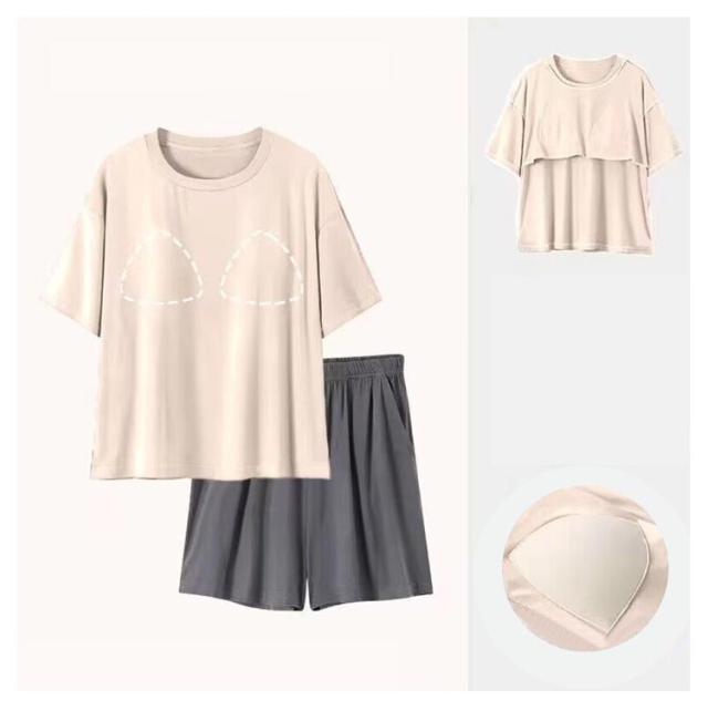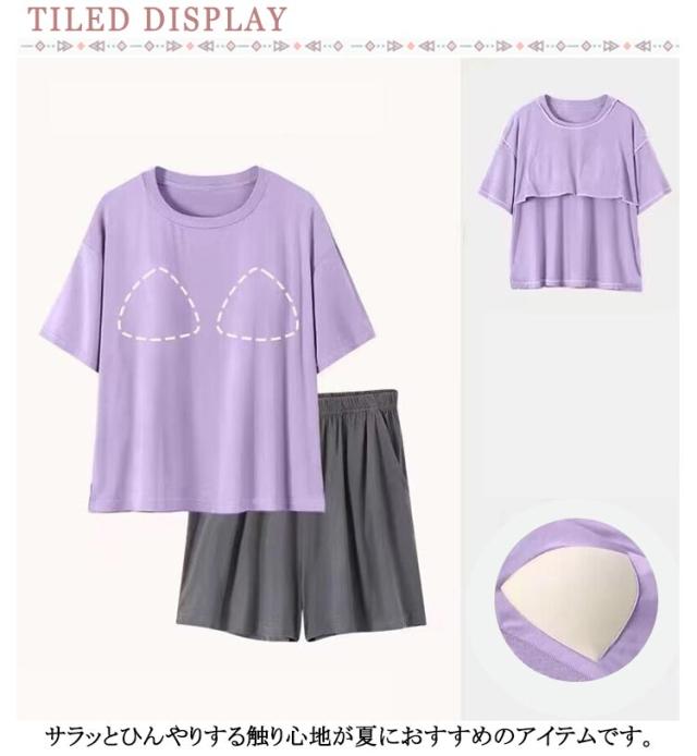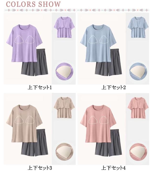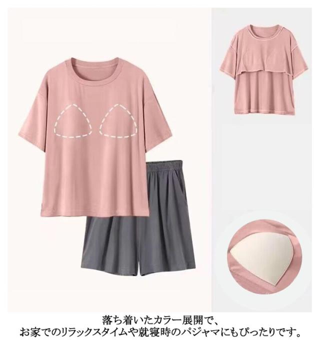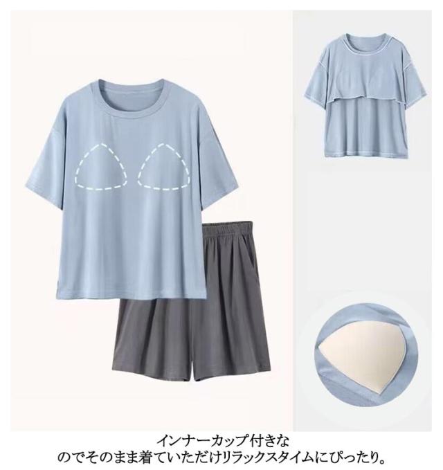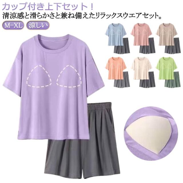 上下 冷感 部屋着 Tシャツ 可愛い カップ付き パジャマ 半袖 セットアップ 冷感 ショートパンツ ルームウェア パンツ レディース セット 短パン 寝巻き 寝間着 ナイトウェア 夏用 2点セット 薄手 涼しい アイスシルク