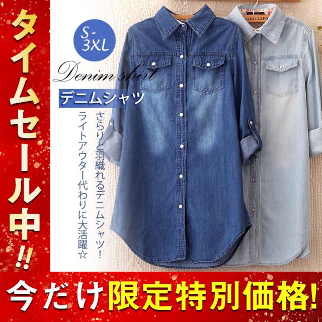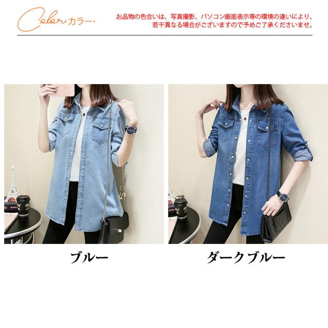 デニムシャツ デニム レディース 長袖 ロング ヴィンテージ 開襟 アウター 大きいサイズ ジャケット 無地 薄手 カジュアル ゆ