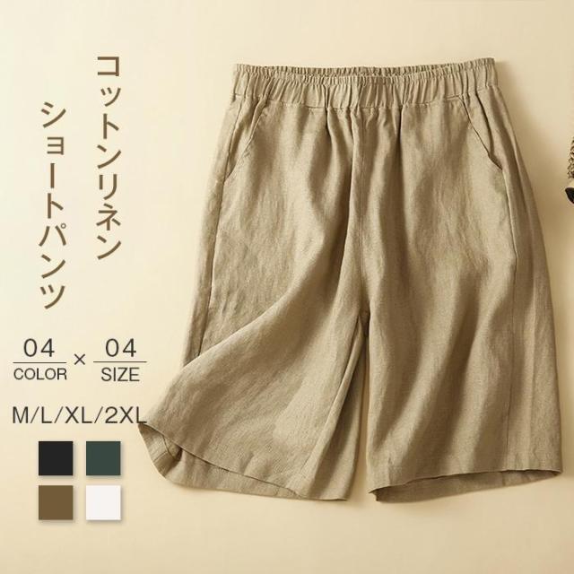 ショートパンツ レディース 短パン ストレート ゆったり 薄手 涼しい ハーフパンツ 綿麻 リネン 夏 着痩せ ランニング カジュアル 五分丈