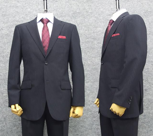 春夏物 2パンツ ベーシック2釦スーツ 紺/ストライプ メンズスーツ [A体] RG9101B
