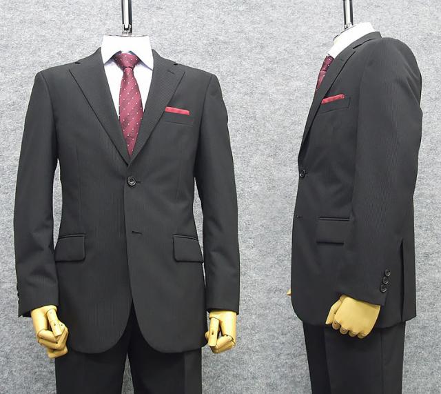 春夏物 2パンツ ベーシック2釦スーツ 黒/ストライプ メンズスーツ [A体] RG9102A