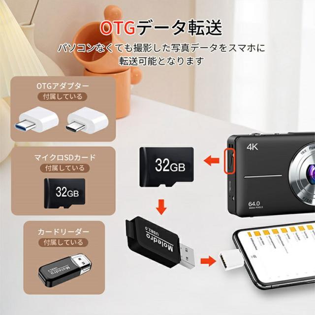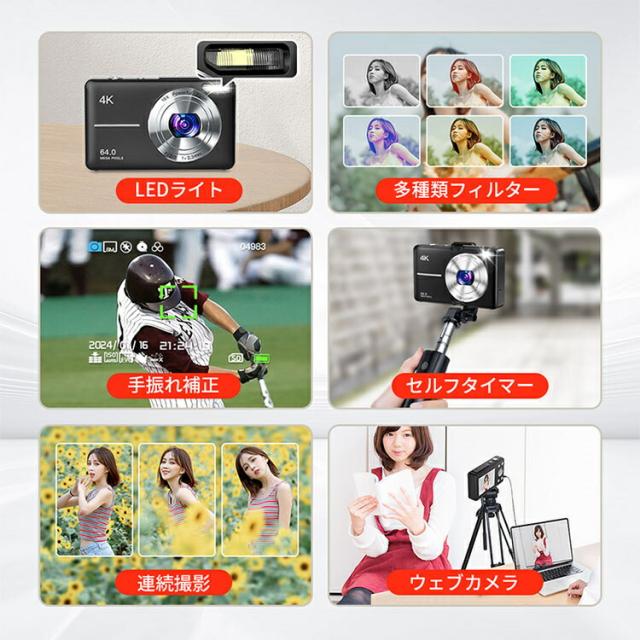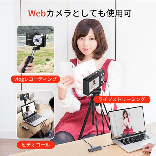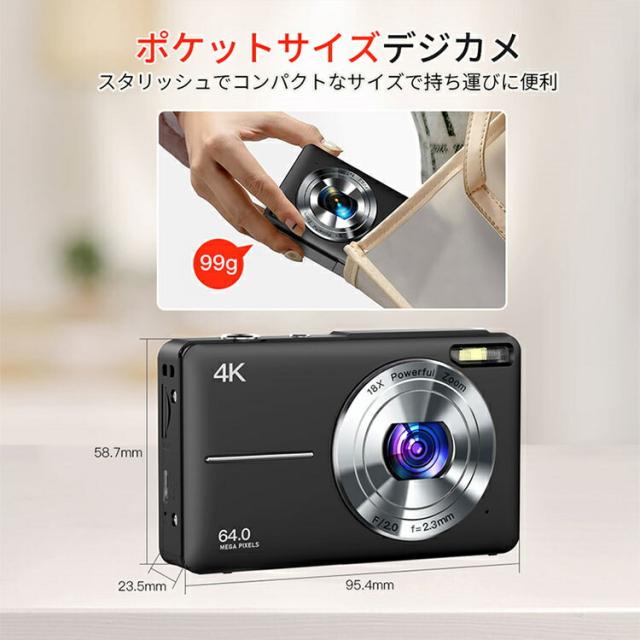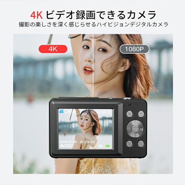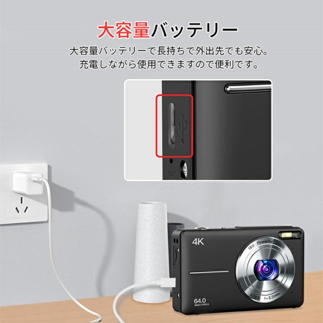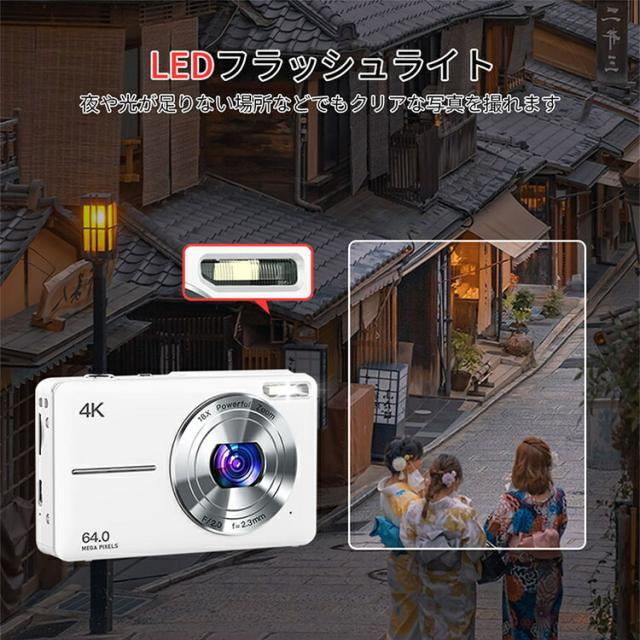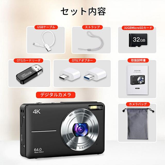 【SNSで話題沸騰】 正規品 デジタルカメラ デジカメ カメラ 4K コンデジ 修学旅行 デュアルカメラ キッズカメラ トイカメラ 日本製チップ 32GBマイクロSDカード付き 18倍ズーム 手振れ補正 ウェブカメラ 2.4インチ大画面 バッテリー内蔵 初心者