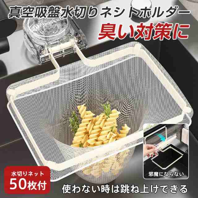 水切りネットホルダー 生ゴミホルダー 強力吸盤 貼り直し可能 水切りネット付き 使い捨て 三角コーナー いらず 水切り ラック 清潔 折り畳み 省スペース 浮かせる 生ゴミ受け入れ 生ゴミ処理 キッチン 三角コーナー 匂い対策 シンク 排水溝 ゴミ受け おしゃれ 便利グッズ ふきん掛けハンガー