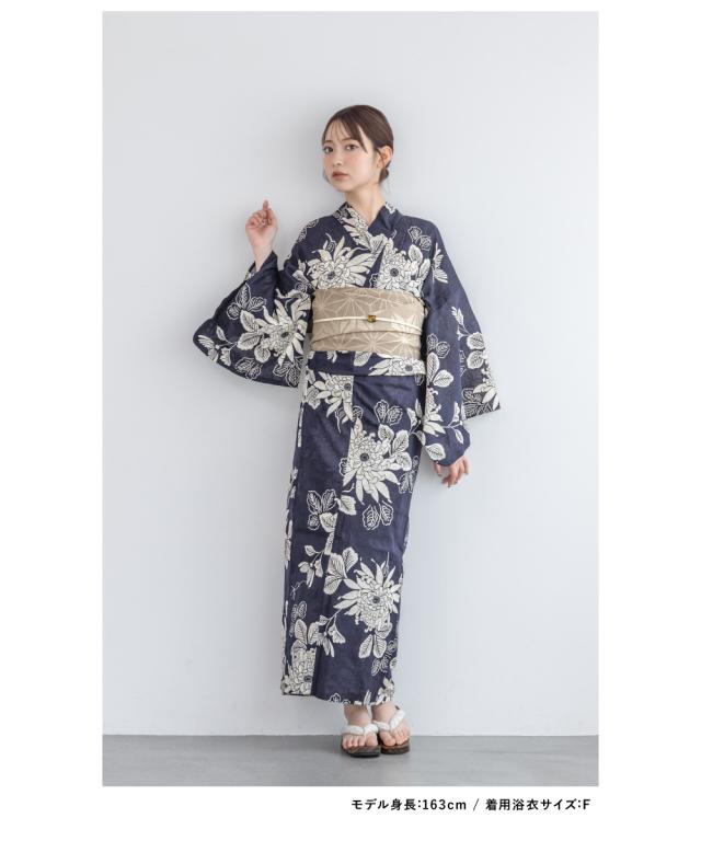 浴衣 セット レディース 浴衣セット 半幅帯 2025 3点セット 簡単 涼しい 紺 ベージュ 菊 レトロ 花柄 綿麻 大人 おしゃれ 可愛い 帯 下駄 フリーサイズ 送料無料