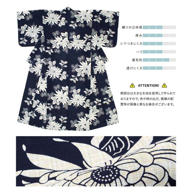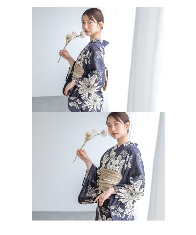 浴衣 紺にベージュ系・菊