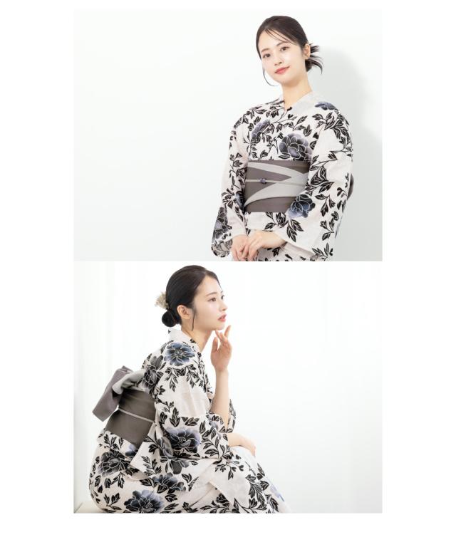 浴衣 セット レディース 浴衣セット 半幅帯 2025 3点セット 黒 紺 ベージュ グレー レトロ モダン 花柄 綿麻 大人 おしゃれ 可愛い 帯 下駄 フリーサイズ 送料無料
