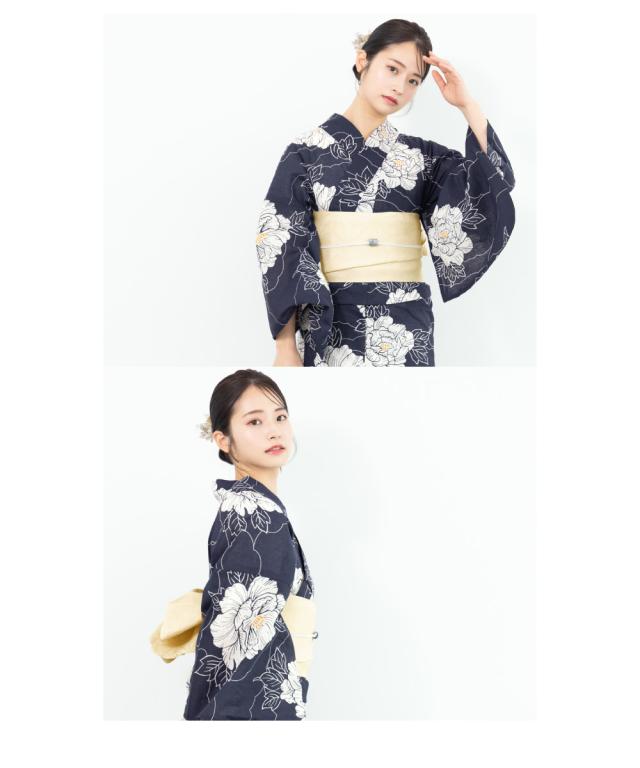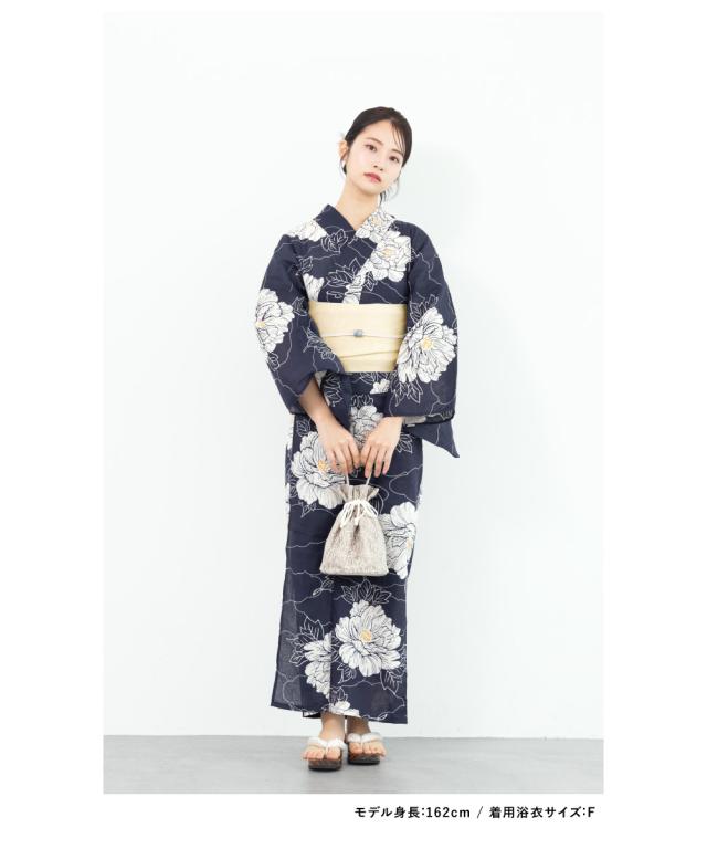 浴衣 セット レディース 浴衣セット 半幅帯 2025 3点セット 簡単 涼しい 紺 白 茶 クリーム 牡丹 花柄 綿麻 大人 おしゃれ 可愛い 帯 下駄 フリーサイズ 送料無料