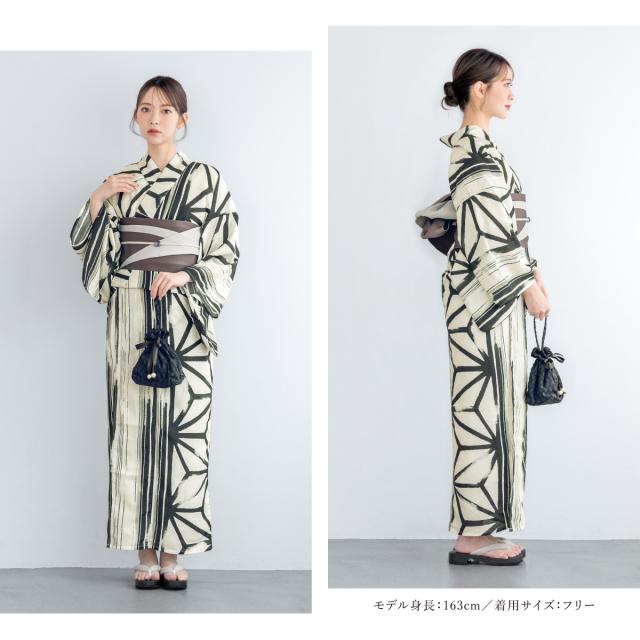 浴衣 セット レディース 浴衣セット 半幅帯 2025 floro 簡単 涼しい 吸水速乾 コーディネート済み 白 黒 グレー 麻の葉 レトロ おしゃれ 可愛い 下駄 S フリー 送料無料