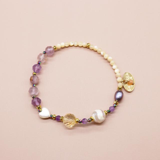 【Mermaid Teardrops】水紋天珠 パール シトリン ガーデンアメシスト ブレスレット | 天然石 おしゃれ パワーストーン ジュエリー 女性 誕生日