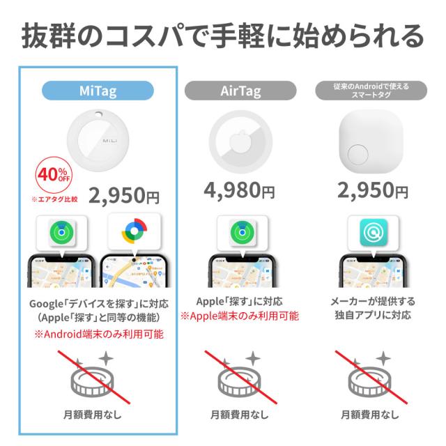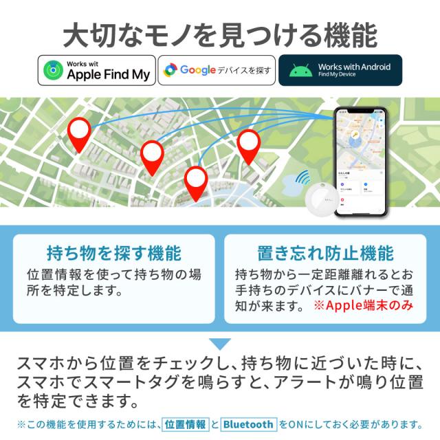 【iPhone、Androidで使える!】スマートタグ android対応 Google「デバイスを探す」 iPhone対応 iOS ANDROID エアタグ互換 android アンドロイド GPS 子供 月額不要 MiTag 小型 追跡 キーホルダー ミタグ 迷子防止 老人 ペット キーファインダー スマートタグ カギ 紛失防止