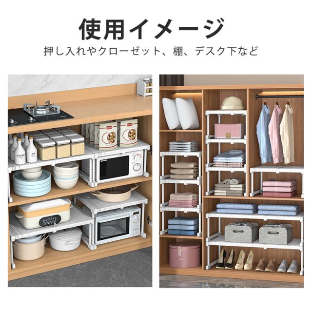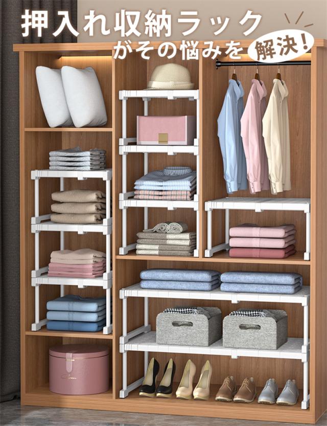 押し入れ収納ラック 棚の幅さが置く物の幅度による自由に調整可能。