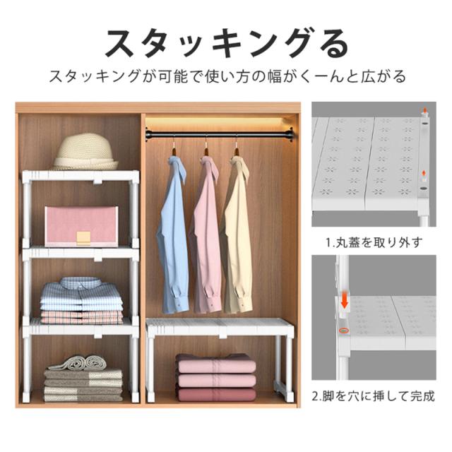 押入れ収納 ラック 2個セット 伸縮棚 クローゼット 押し入れ収納 収納棚 収納ラック 重ねる 整理棚 突っ張り棚 ハイタイプ ロ