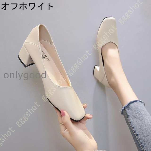 痛くない 4e 幅広 パンプス スクエアトゥ チャンキーヒール 太ヒール レディース 5cmヒール 結婚式 二次会 パーティー 歩きやすい 大きいサイズ 小さいサイズ